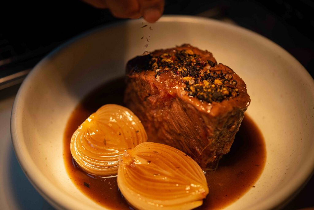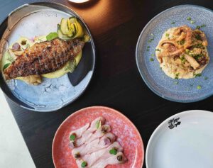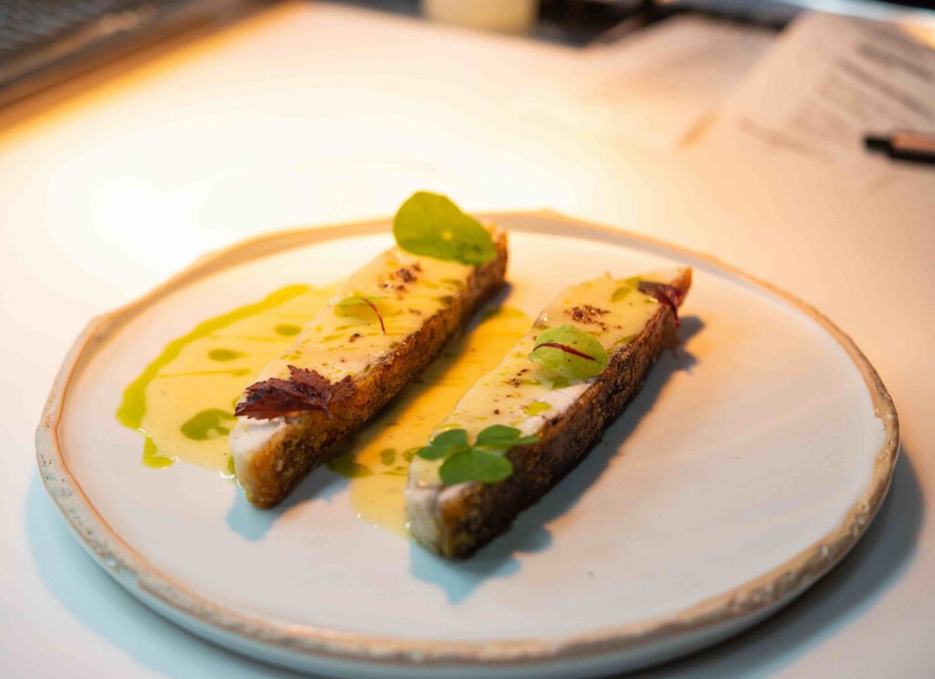 เราทำงานร่วมกับชาวประมงท้องถิ่นเพื่อนำเสนอวัตถุดิบทะเลที่ดีที่สุด พร้อมเชื่อมโยงรสชาติจากออสเตรเลียผ่านเมนูและวัตถุดิบที่นำเข้าโดยตรง เราทำการบ่มแห้งและแปรรูปปลาภายในร้าน เพื่อเสริมรสชาติและทำให้เนื้อนุ่มขึ้น เพิ่มความซับซ้อนและความอร่อยในทุกคำที่ลิ้มลอง